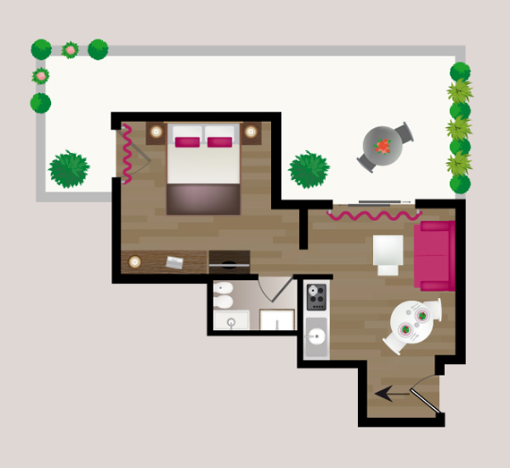 Dotato di due ambienti, i Charming Bilo sono bilocali da 30 a 37 mq che dispongono di salotto con cucina a vista, ampia balconata, divano letto e camera da letto con letto matrimoniale. Tutti gli appartamenti sono arredati con gusto ed originalità arricchiti da famosi complementi di design come lampade Kartell e articoli del designers Philippe Starck.