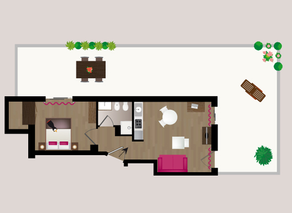 Esclusivi Bilocali, da 40 a 43 mq tutti situati ai piani alti e circondati da un suggestivo panorama di cui godere comodamente dal proprio terrazzo arredato. Gli attici dispongono di salotto con cucina a vista, ampia balconata, divano letto e camera da letto con letto matrimoniale. Tutti gli appartamenti sono arredati con gusto ed originalità arricchiti da famosi complementi di design come lampade Kartell e articoli del designers Philippe Starck.